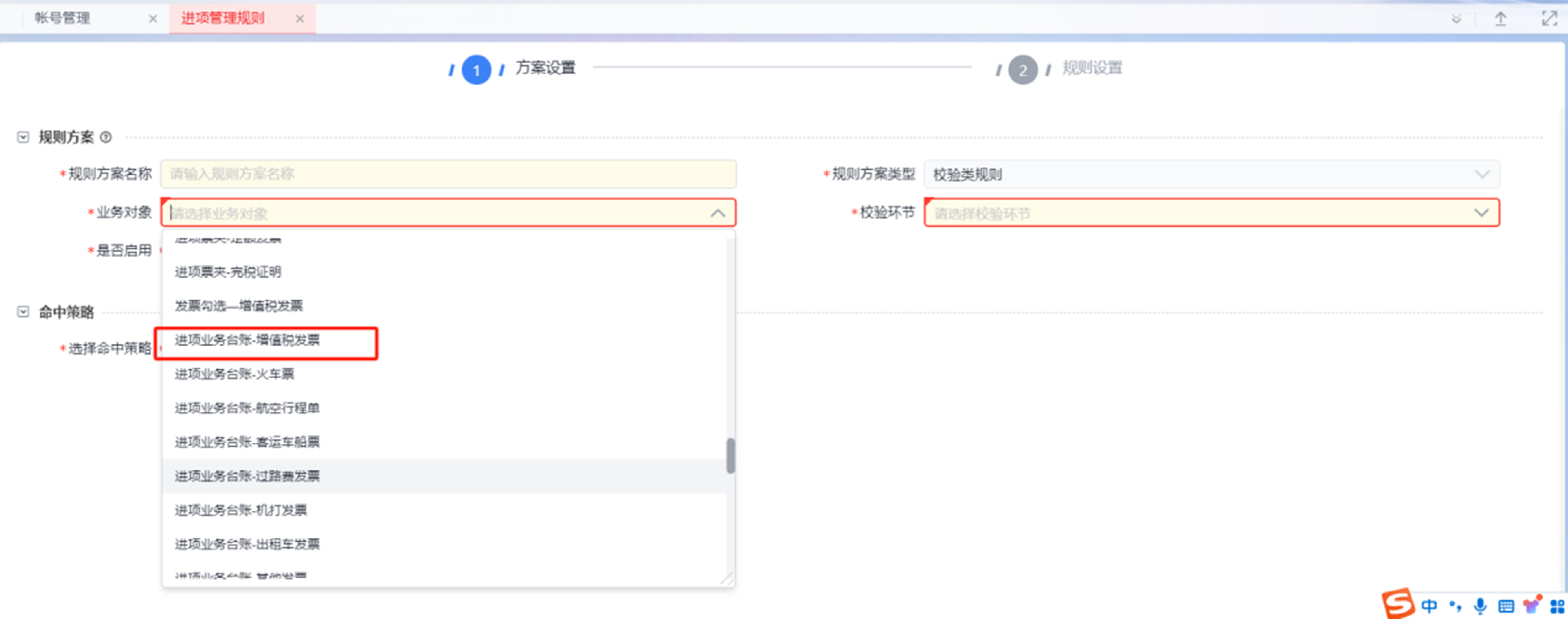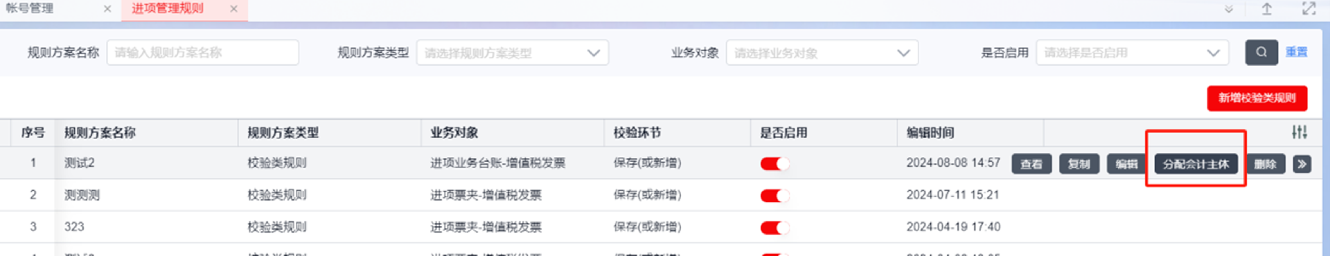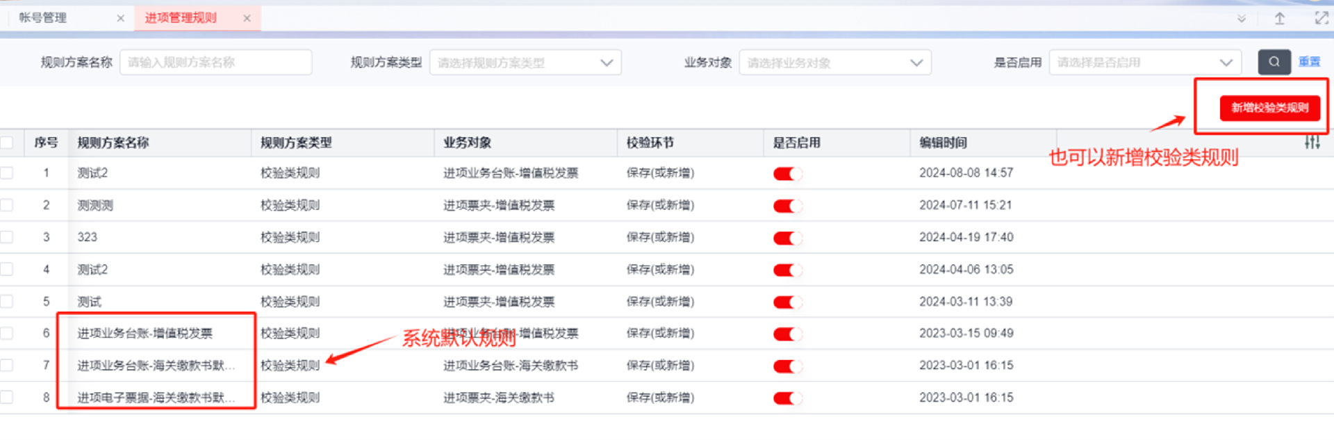 通过【进项管理规则】进入