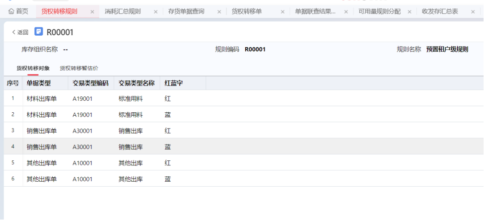 出入库单据若维护了供应商寄存单据行,保存时会检查货权转移规则。根据货权转移规则的设置,自动推货权转移单。