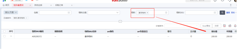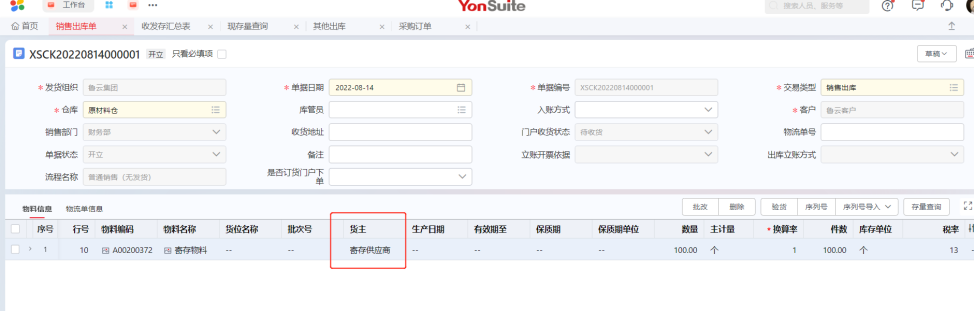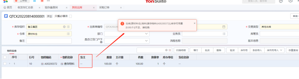寄存的库存在出库时需要选择货主,否则无法出库,提示可用量不足