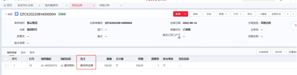 路径: 供应链云>采购管理>库存管理>库存收发>其他出库