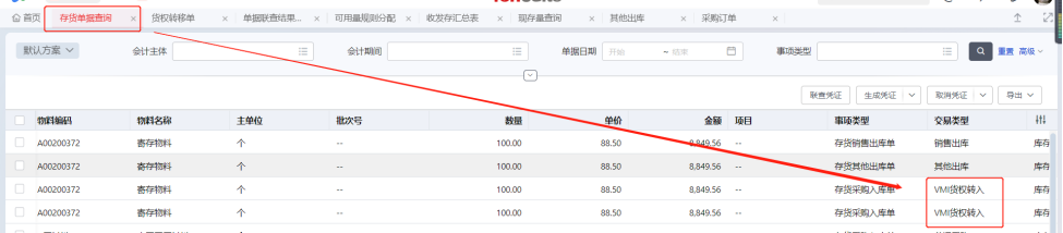 3.3 存量查询、成本查询(VMI补货入库)