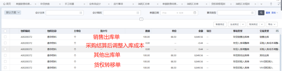 VMI采购业务根据出库汇总情况来进行VMI采购结算,传递到存货核算,确认采购成本。