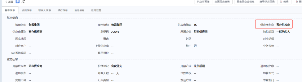 创建的供应商要确保适用范围有对应的业务单元。
